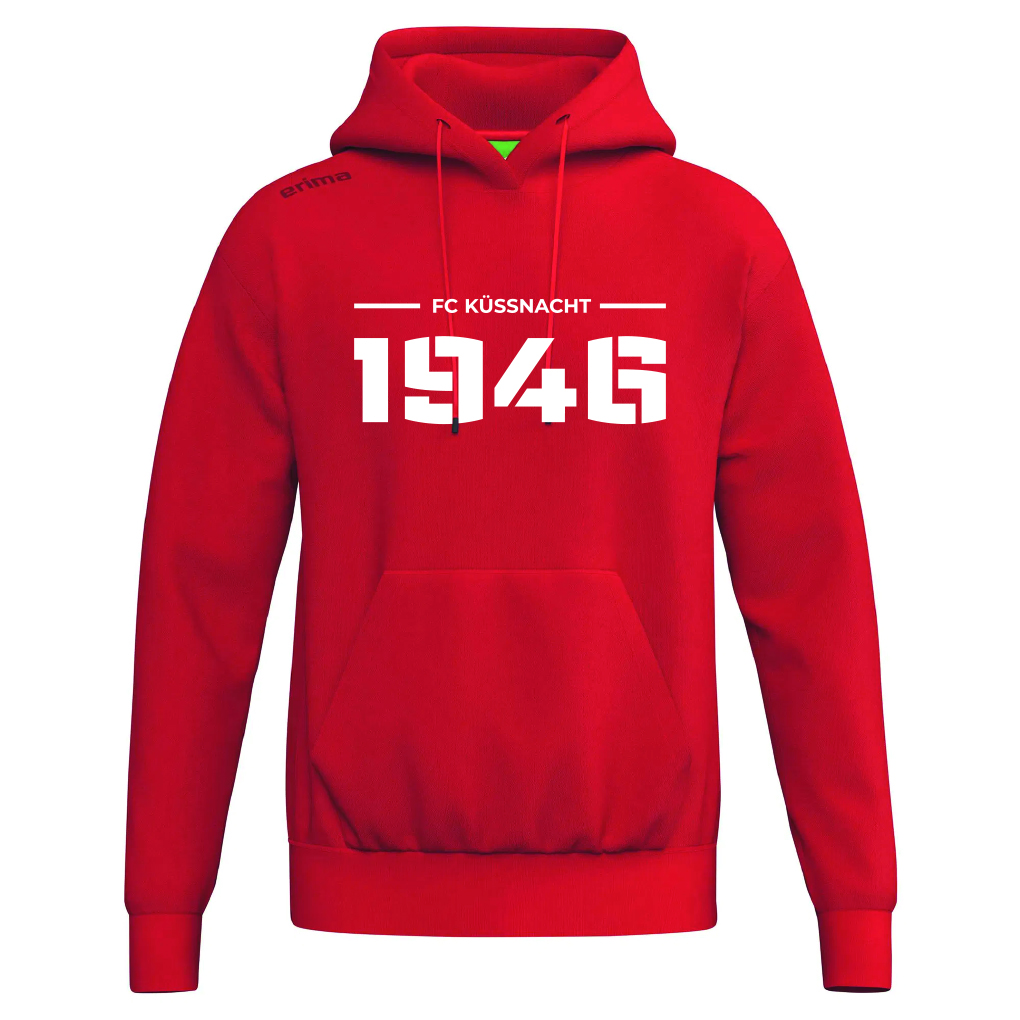 Baumwollmix mit Soft Touch, Innen flauschig angeraut. Lockerer Unisex Schnitt für Kinder, Damen und Herren. Gefütterte Kapuze & gesticktes erima-Logo auf